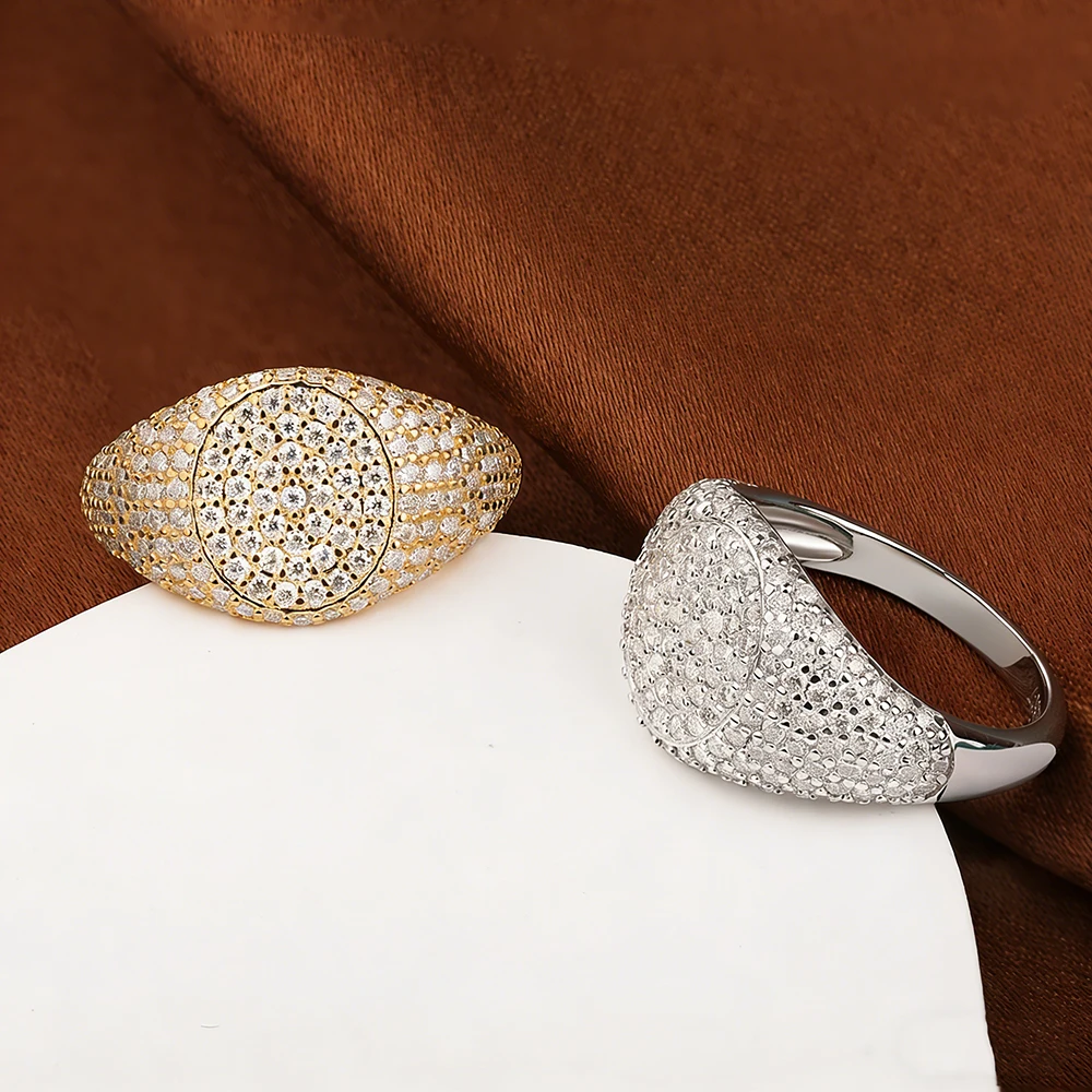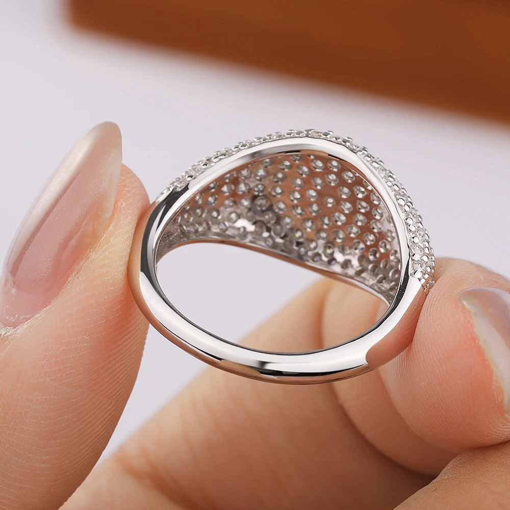 1.2mm Full Diamond Moissanite Ring for Women Men Hiphop Style S925 Sterling Silver Plated 18K Gold Party Eternity Band Jewelry