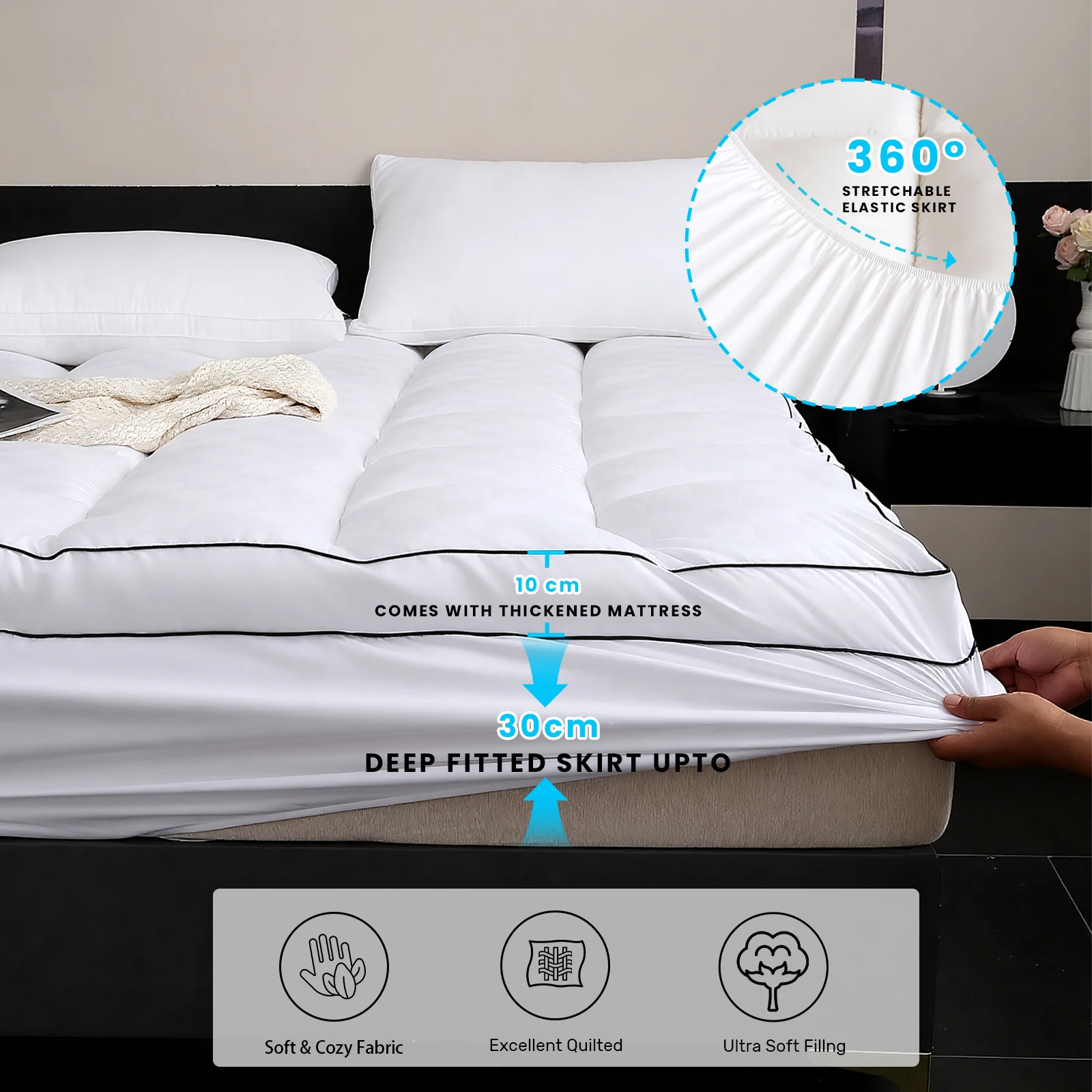 Double Bed Mattress Topper 10cm: Quilted Ultra Fluffy, Breathable Microfiber, Elastic Straps for Comfort & Restful Sleep