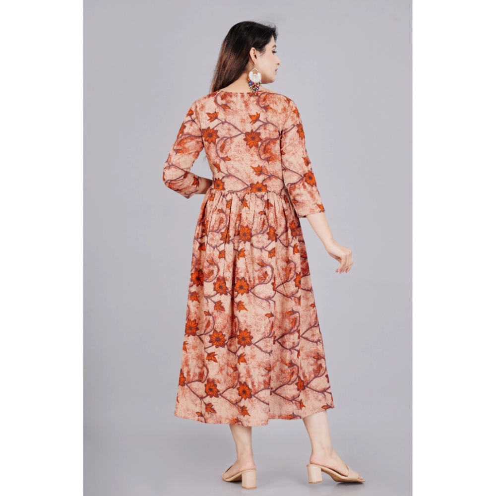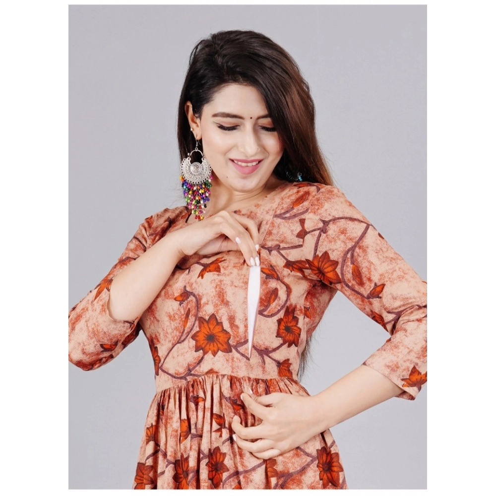 Generic Women’s Casual 3/4 Sleeve Printed Viscose Maternity Feeding Kurti (Brown)